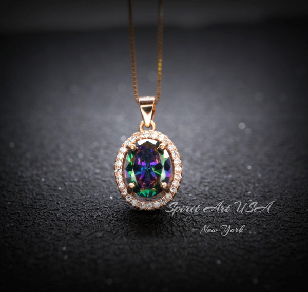 Dainty Mystic Topaz Rose gold halo style Oval cut