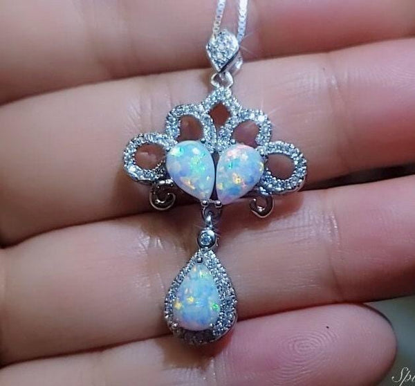 ◆Main Stone : Lab created white fire opal 5*7 mm