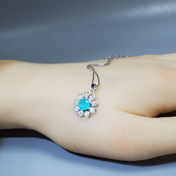 Tiny Blue Paraiba Gemstone Sunflower Jewelry High Quality unique Artisan design full sterling silver made