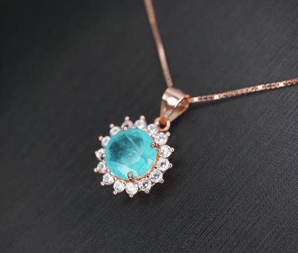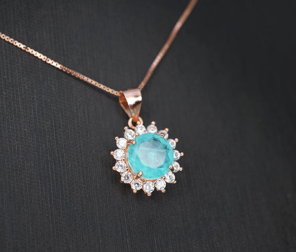 Materials: Paraiba Tourmaline, Rose gold coated sterling silver, rose gold.