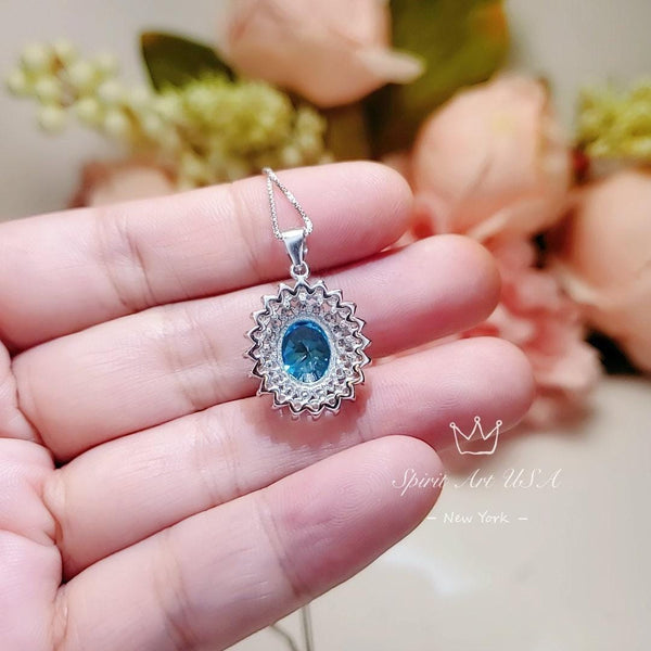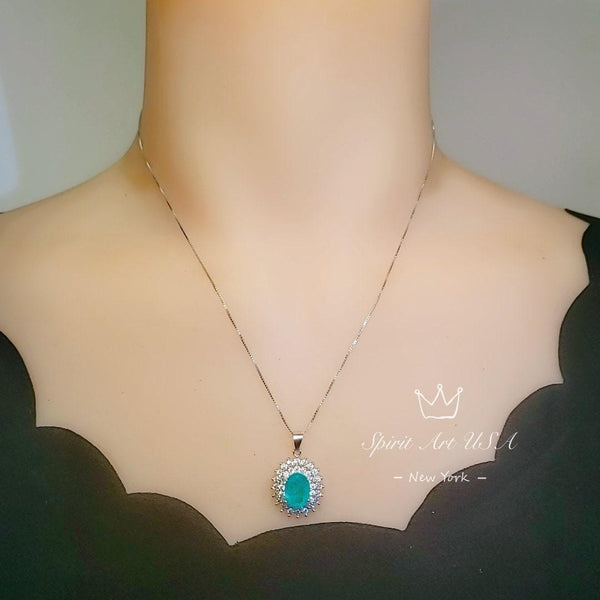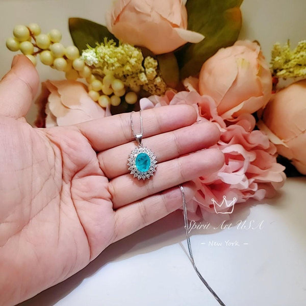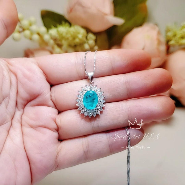 Large Paraiba Jewelry Doble Diamond Halo Style