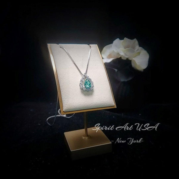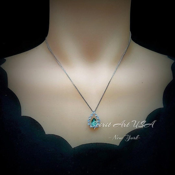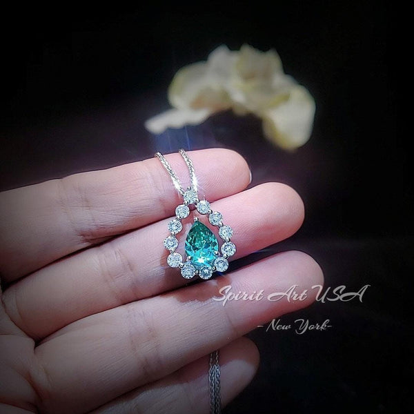 Dainty Green Paraiba Jewelry Diamond Halo Style Pear Cut