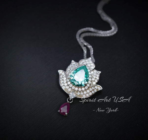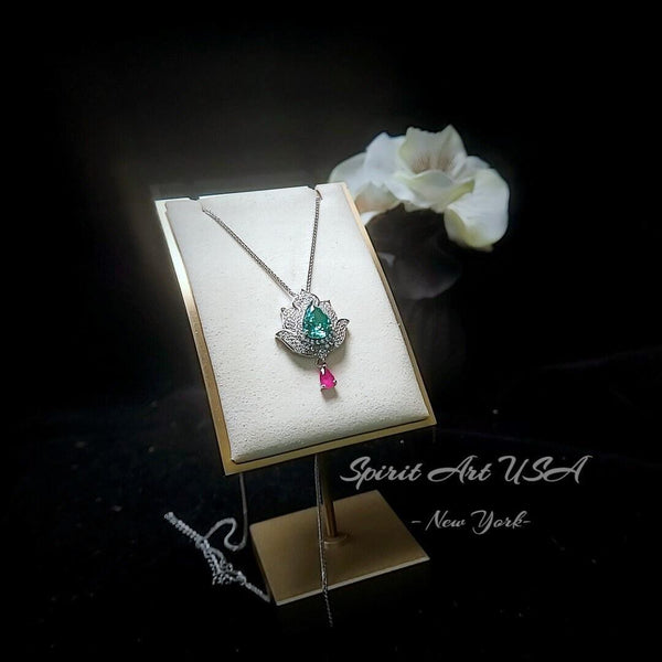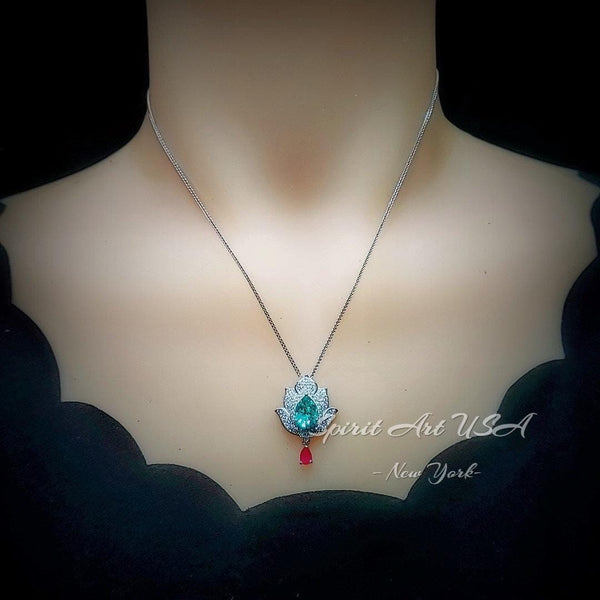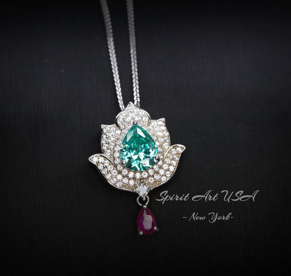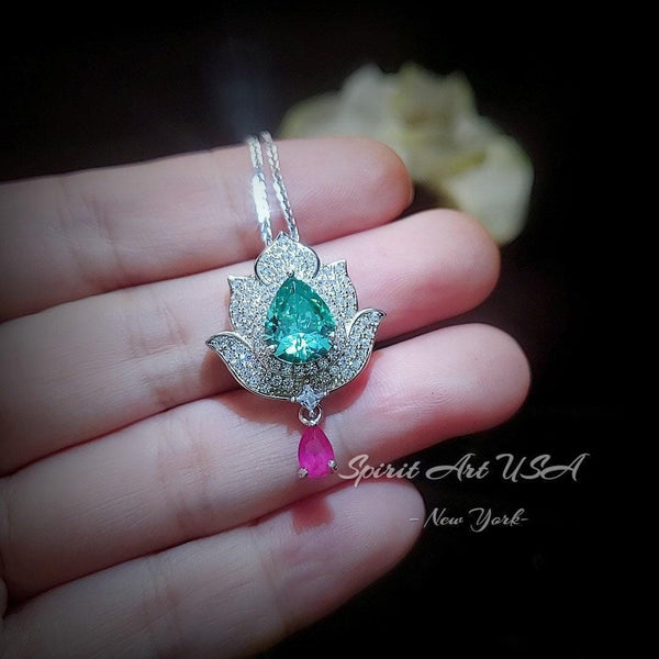 Large Green Paraiba Jewelry Diamond Lotus Flower Style Pear Cut