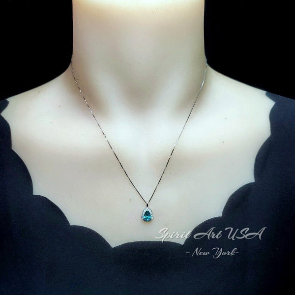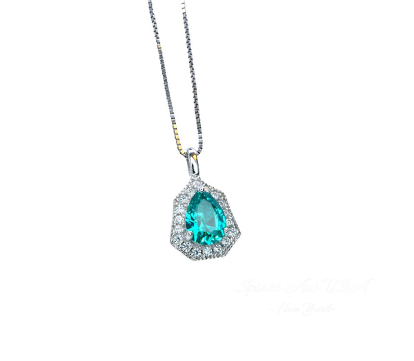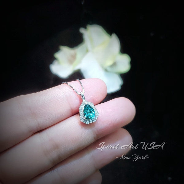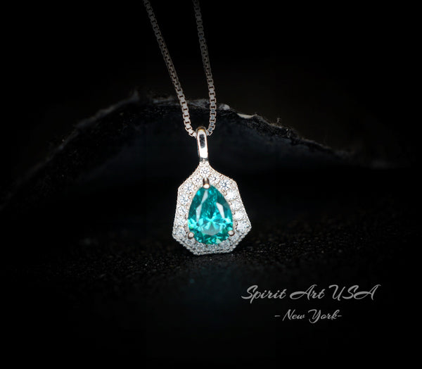 Paraiba Necklace - Minimalist Turquoise color green like blue - paraiba pendant - super tiny, sterling silver, teardrop pear #312