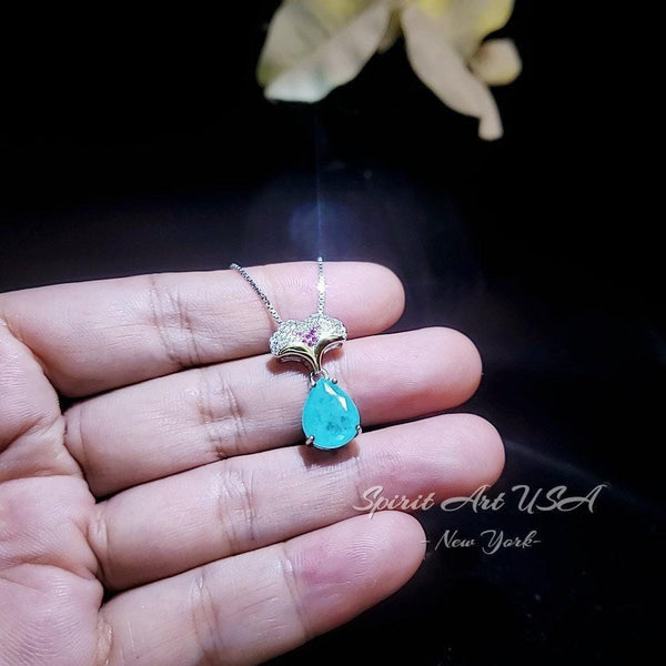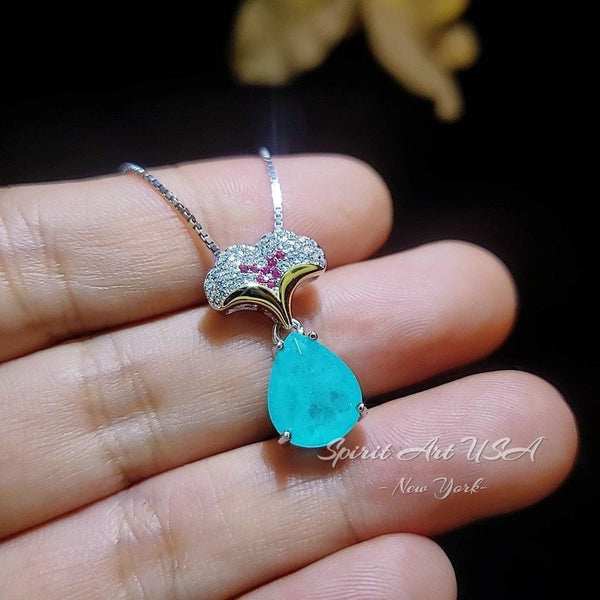 Large Paraiba Tourmaline Jewelry Ginkgo biloba Style