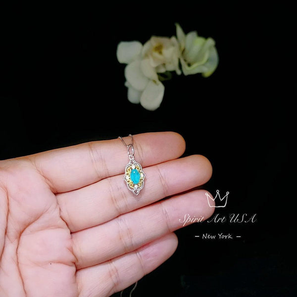 Main stone: Lab created 4*6mm blue Paraiba Tourmaline