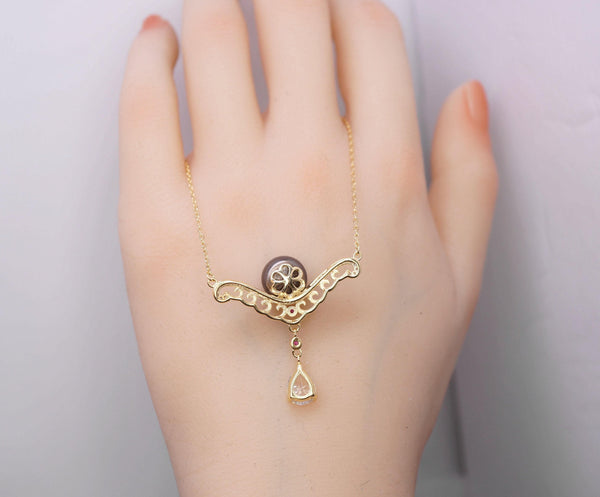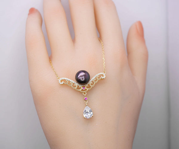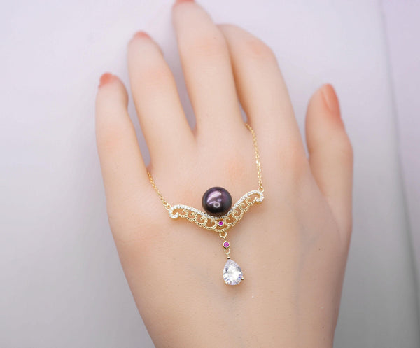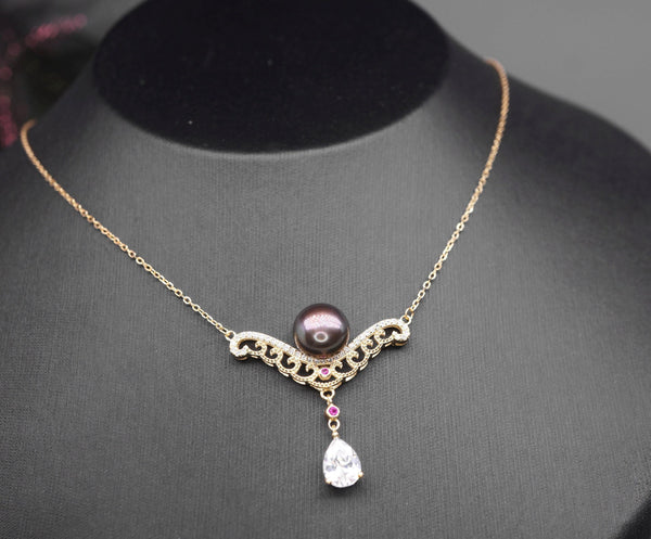 Main stone:10mm Genuine Black Pearl