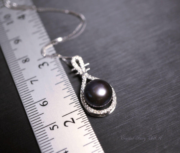 Genuine black pearl necklace sterling silver white pearl jewelry