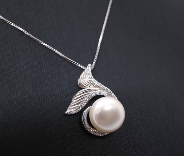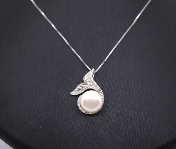 Natural white pearl mermaid sterling silver necklace.
