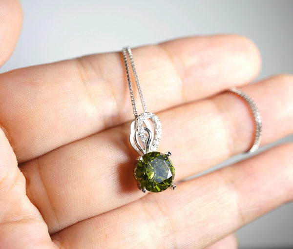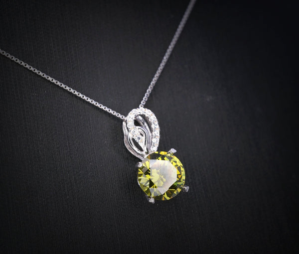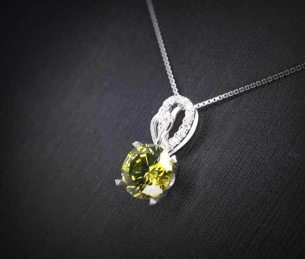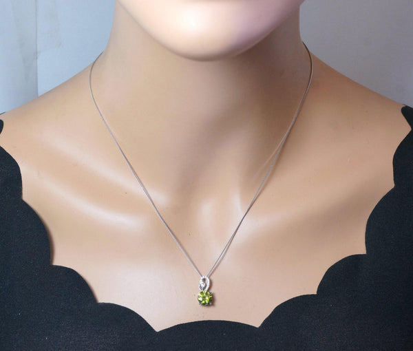 8mm 2ct Round Peridot Necklace - Sterling Silver Halo Lab Created Peridot Pendant - Halo Green August Birthstone Jewelry 087