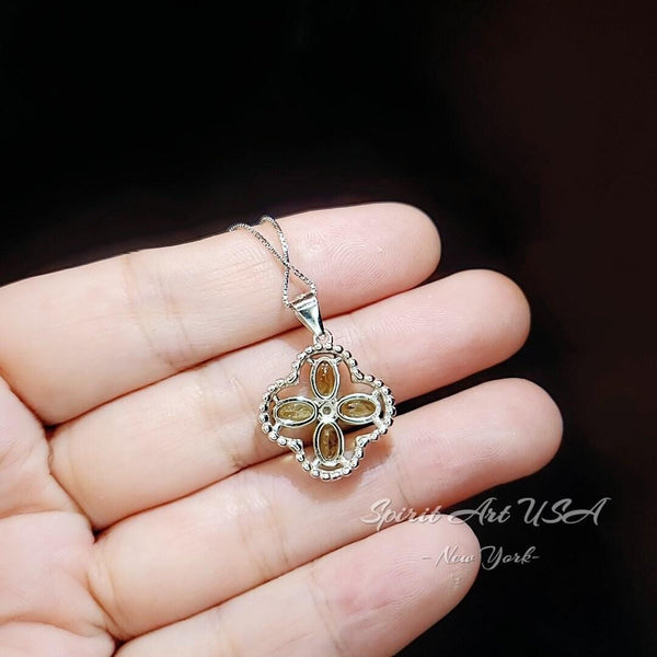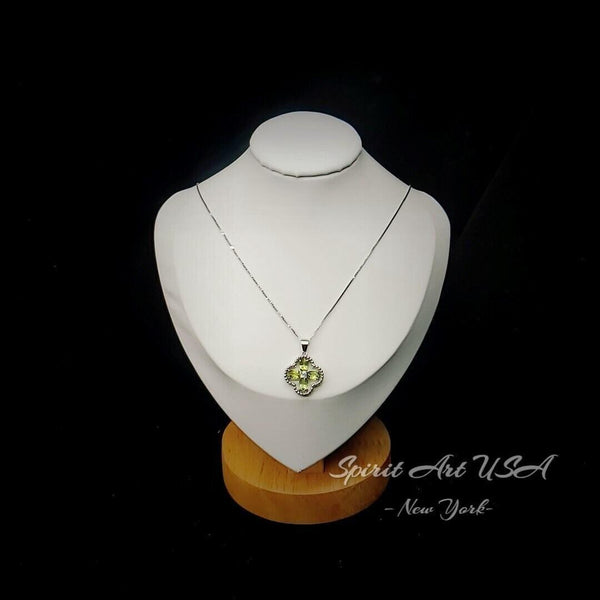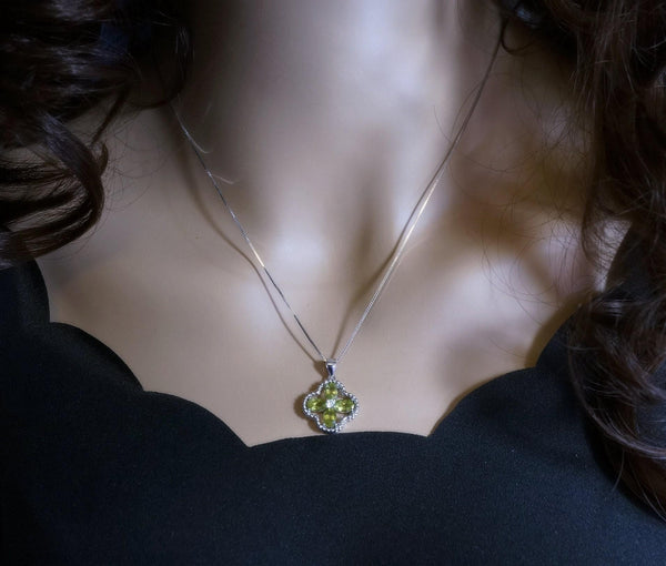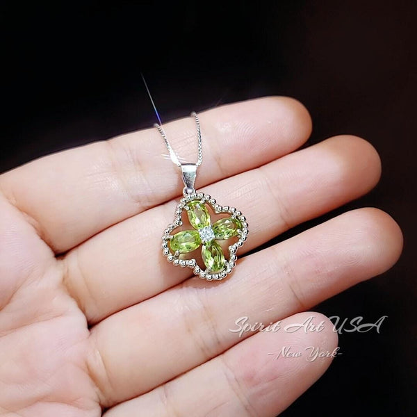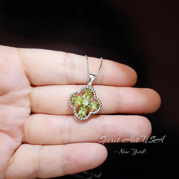 Delicate Green Peridot Four Leaf Clover Necklace, High quality full sterling silver Green peridot jewelry