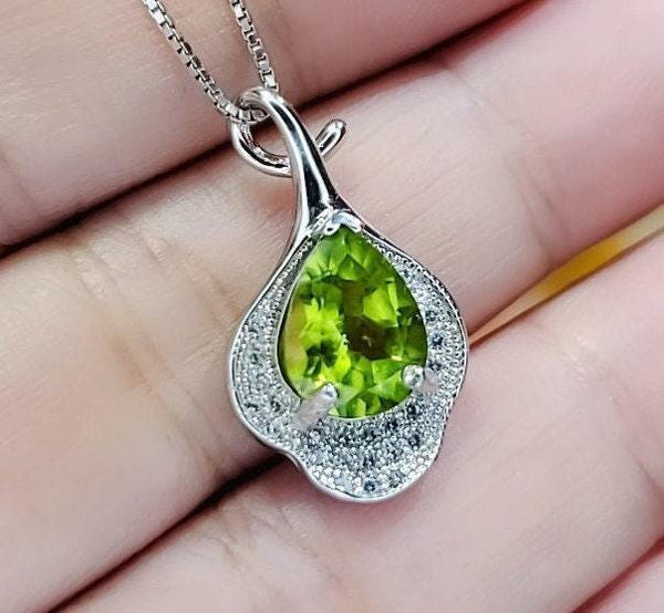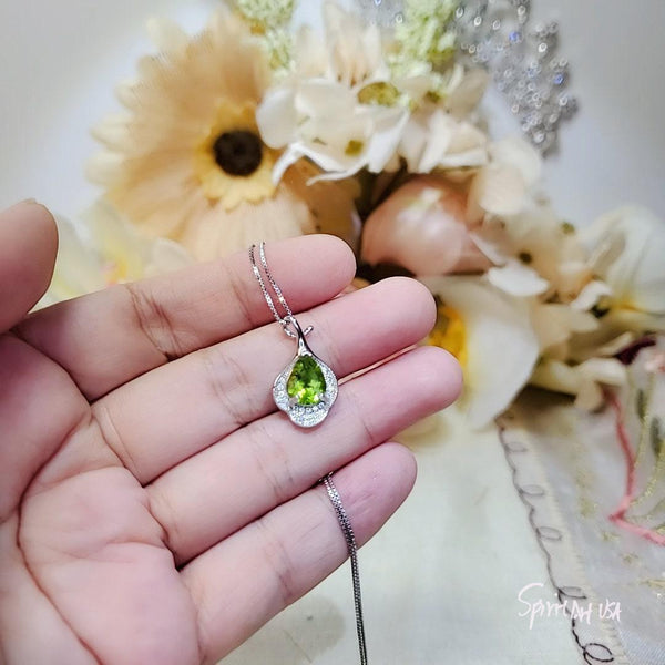 Natural Peridot jewelry Teardrop Cut Flower Petal Style