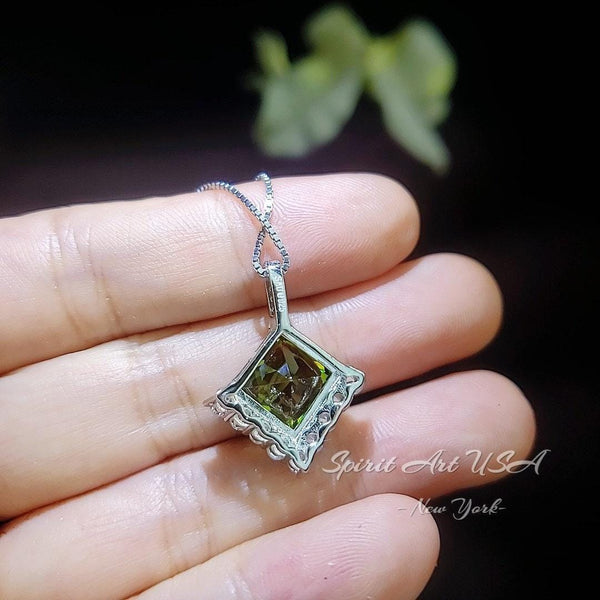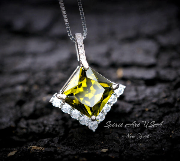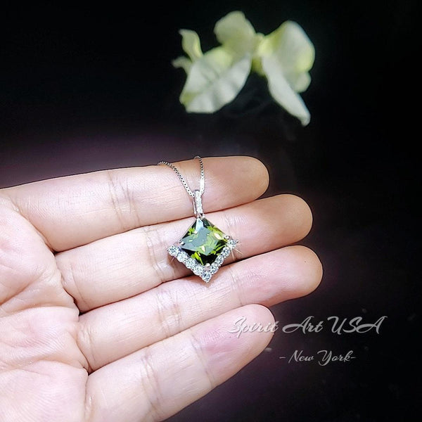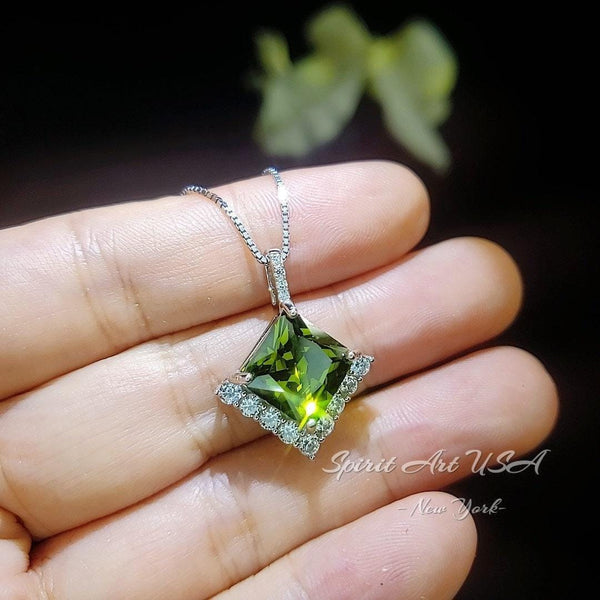 Main stone: Lab created 10 mm Green Peridot gemstone 6.5 CT