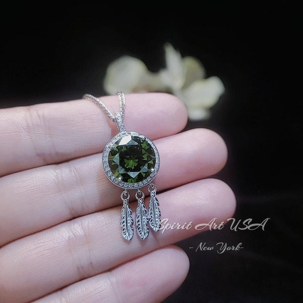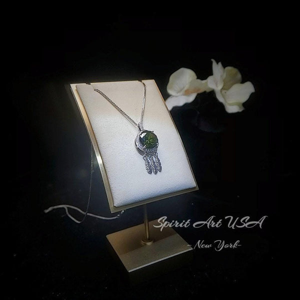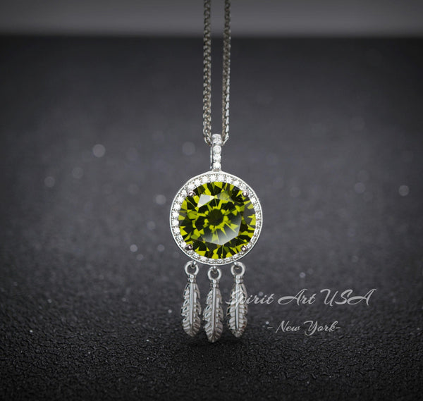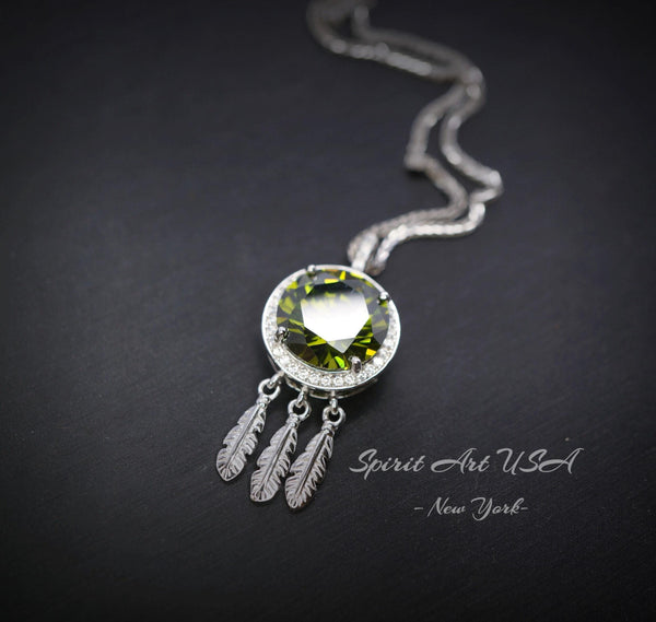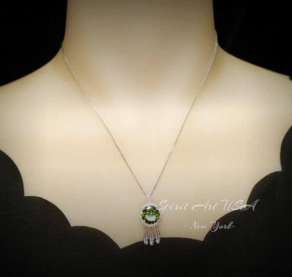 Large Green Peridot Necklace - 18KGP @ Sterling Silver - dreamcatcher Necklace - August Birthstone - Dream Catcher Peridot Pendant #690