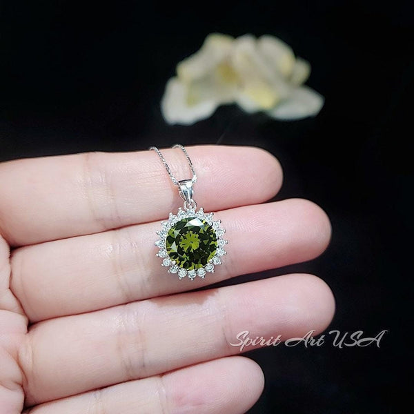 Large Round Peridot Necklace - Sterling Silver Halo 10 mm 4 CT Princess Diana Style Peridot #143