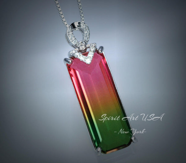 Rainbow rectangle Tourmaline Gemstone Jewelry unique Artisan design full sterling silver made