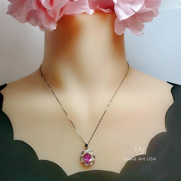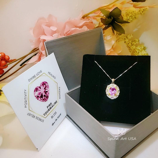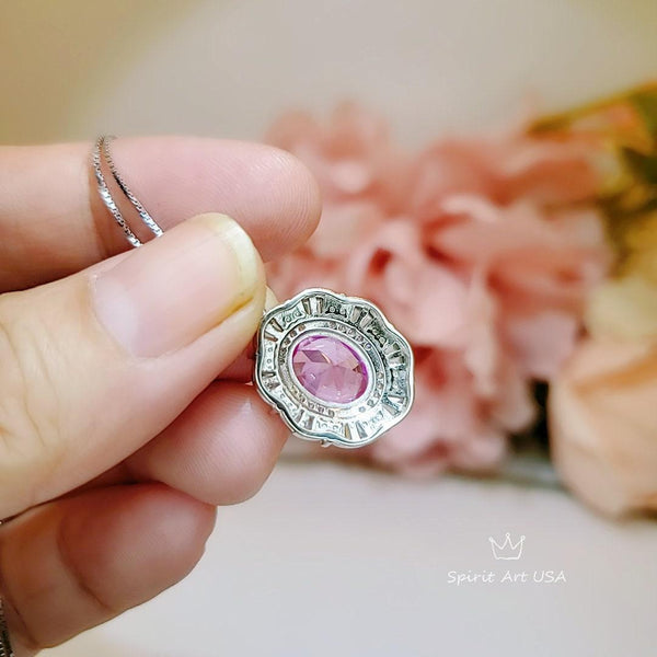 Pink Tourmaline Jewelry Sterling Silver Diamond Flower Oval large Style