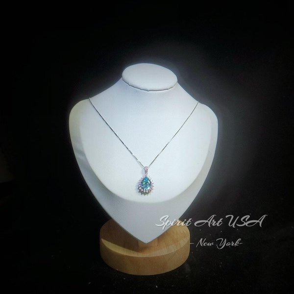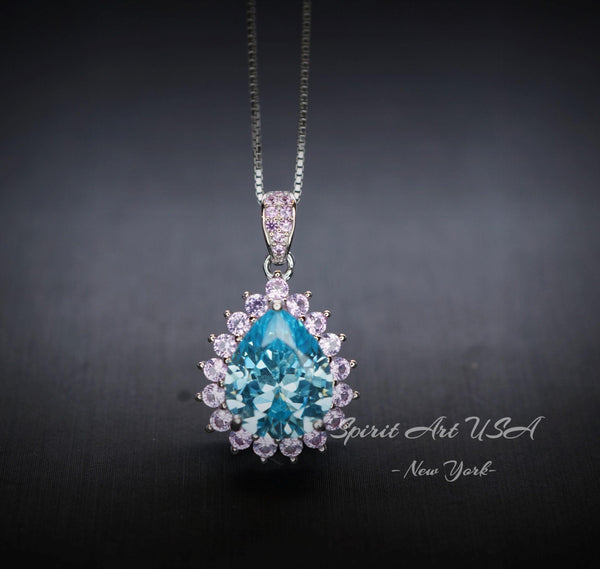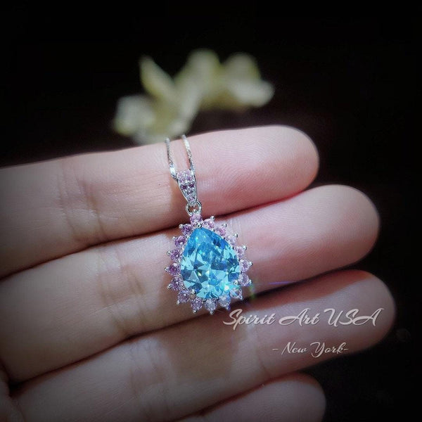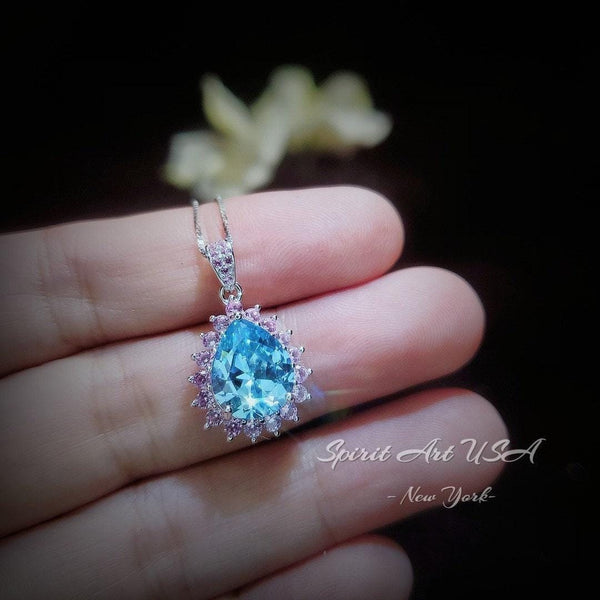Large blue aquamarine Jewelry Pink Tourmaline Halo style Teardrop Cut