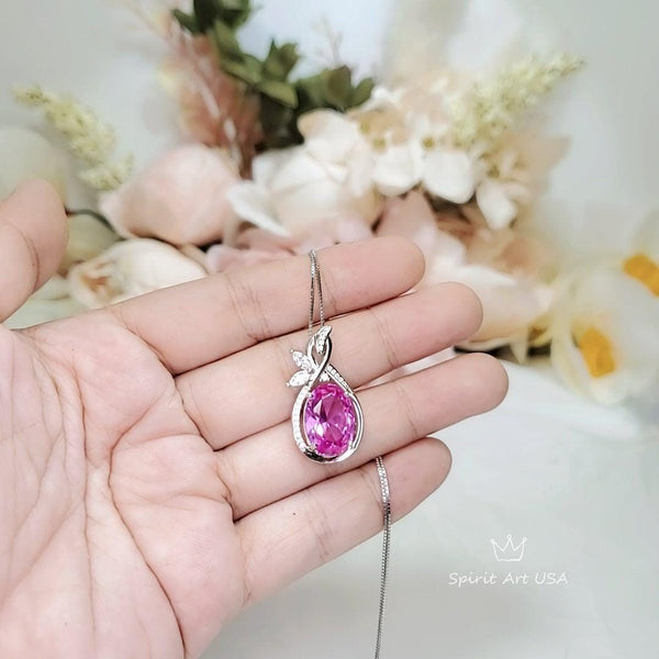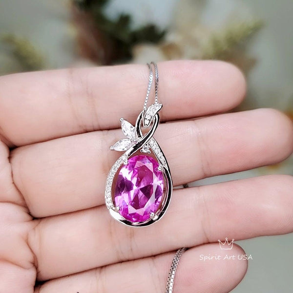 Large Pink Tourmaline Jewelry Silver Leaf Style