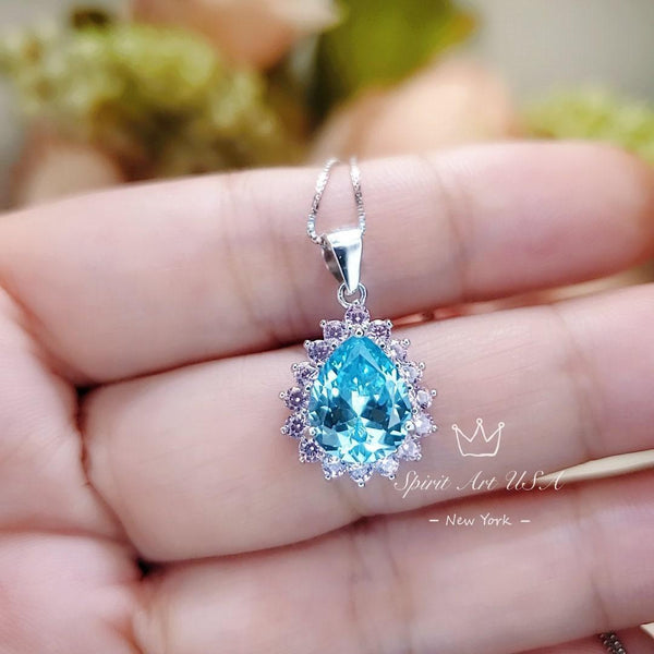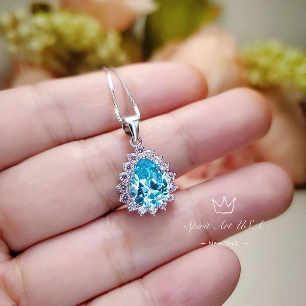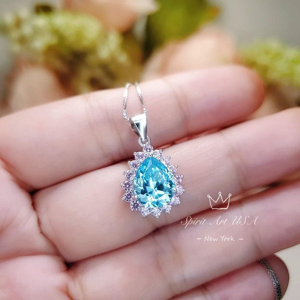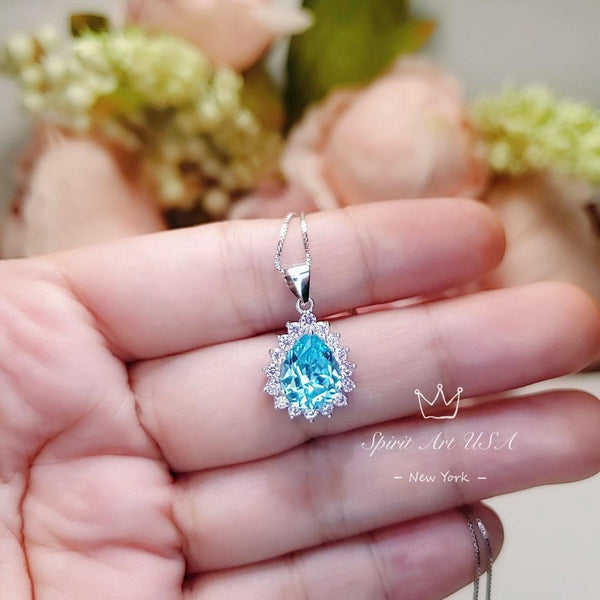 Blue Aquamarine Jewelry Large sterling silver teardrop Style
