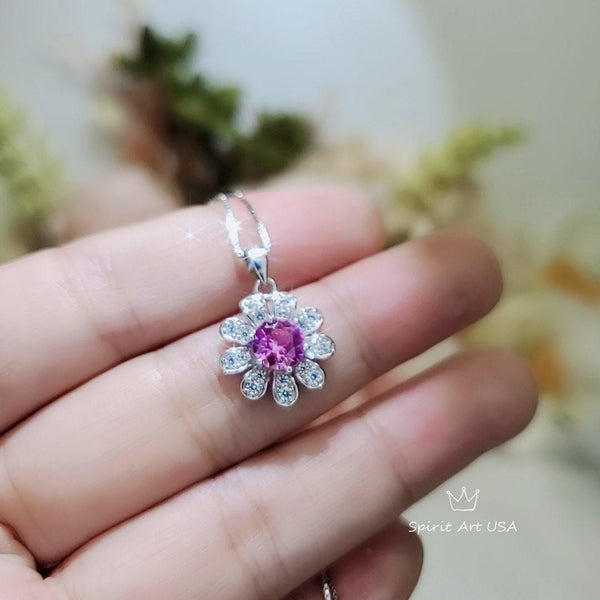 Pink Tourmaline Jewelry Tiny Sunflower Style