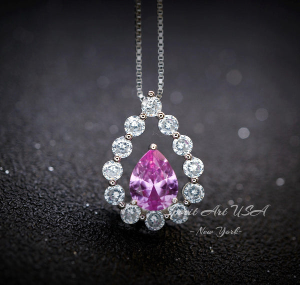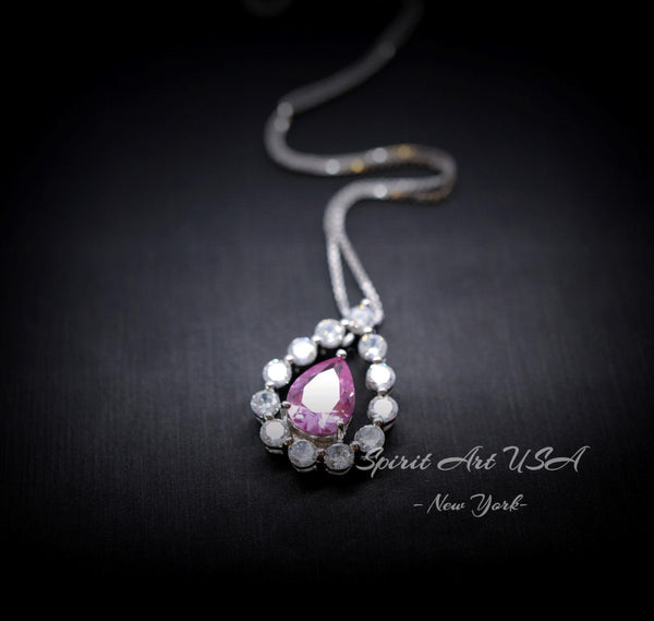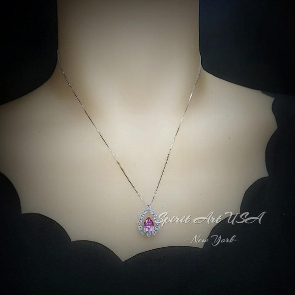 Dainty Pink Tourmaline necklace Diamond Halo Teardrop Style
