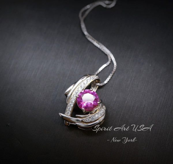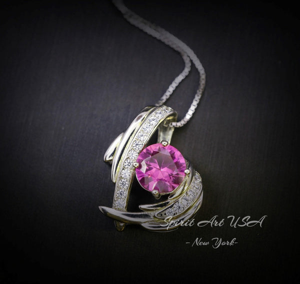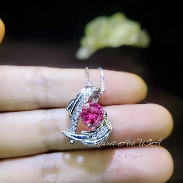 Large Sterling Silver Angel Wing Jewelry with Pink Tourmaline Gemstone