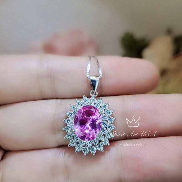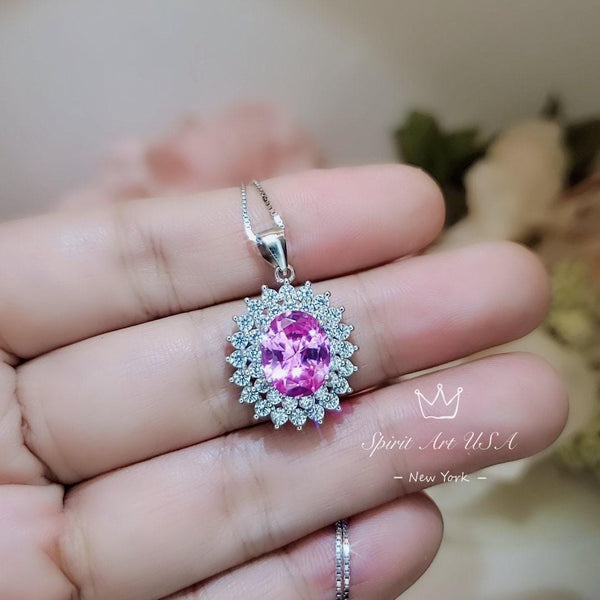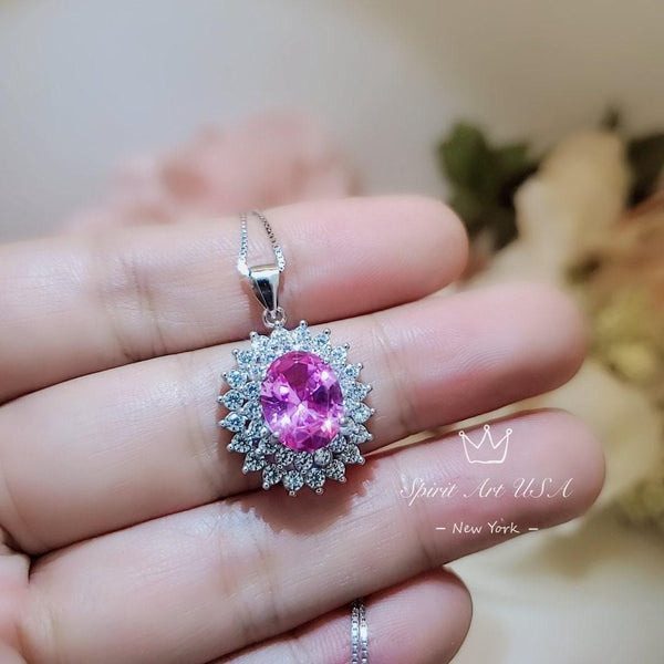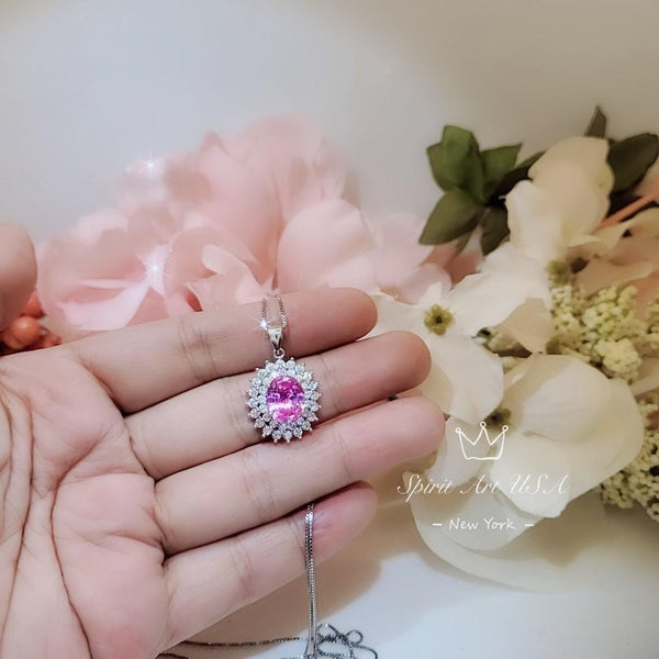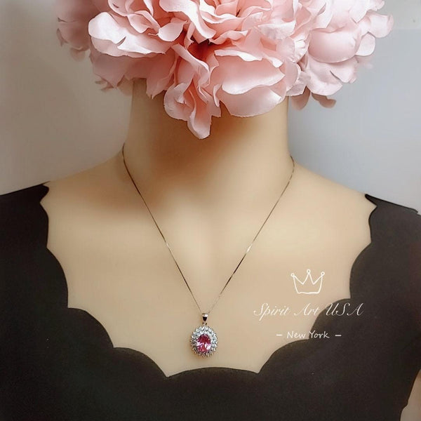 Large Pink Tourmaline Jewelry Double diamond circle oval Style