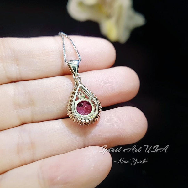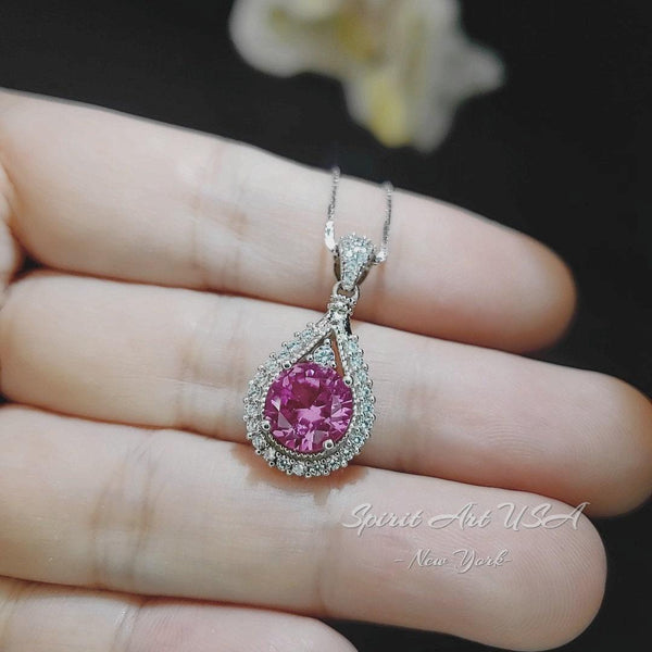 Pink Tourmaline Round Cut Drop Style Necklace Diamond Halo Style
