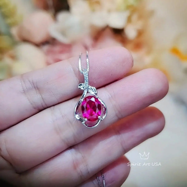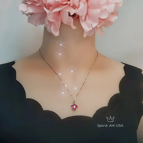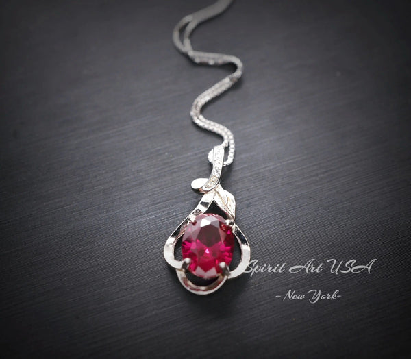 Solitaire Ruby Flower necklace sterling silver made Gemstone Necklace, Handmade Jewelry