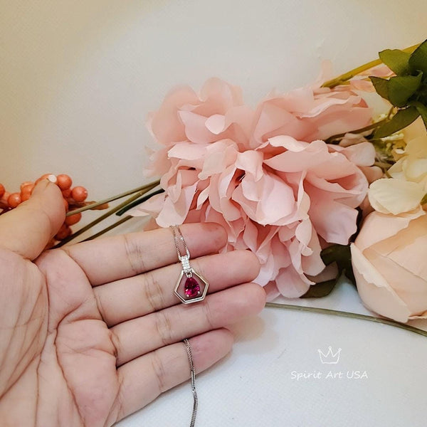 Tiny Red Ruby Jewelry Geometric Triangle Style