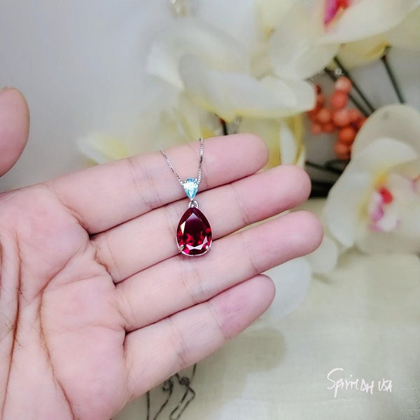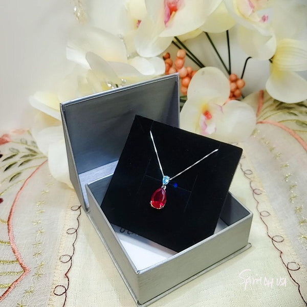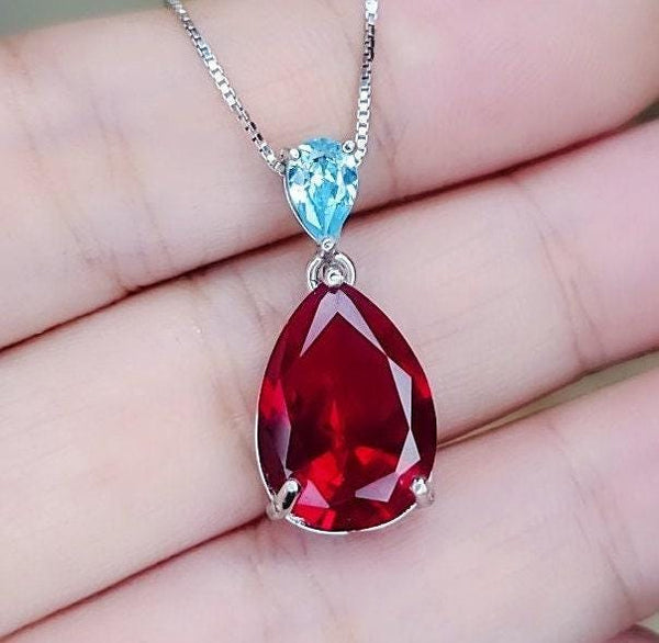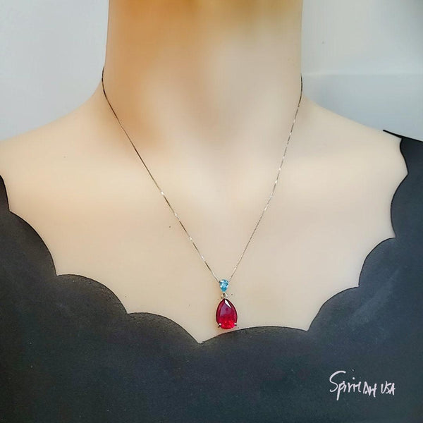Large Ruby Jewelry Teardrio with aquamarine stone style