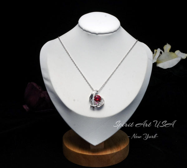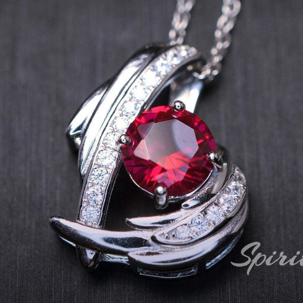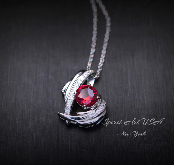 Protective Angel Wing Ruby Necklace Full Sterling Silver White Gold Coated Store Exclusive Design July Birthstone Angel Wing Pendant #825