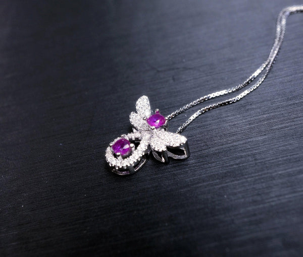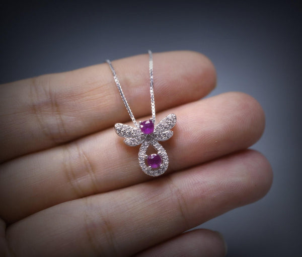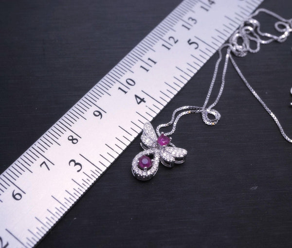 Ruby Necklace - 925 Sterling Silver - Gemstone Butterfly - White Gold coated - Ruby Necklace #238