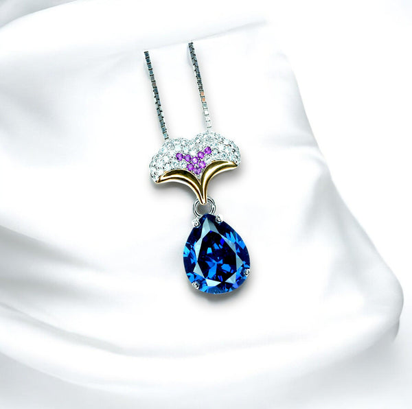 Large Blue Sapphire Jewelry Ginkgo biloba Style