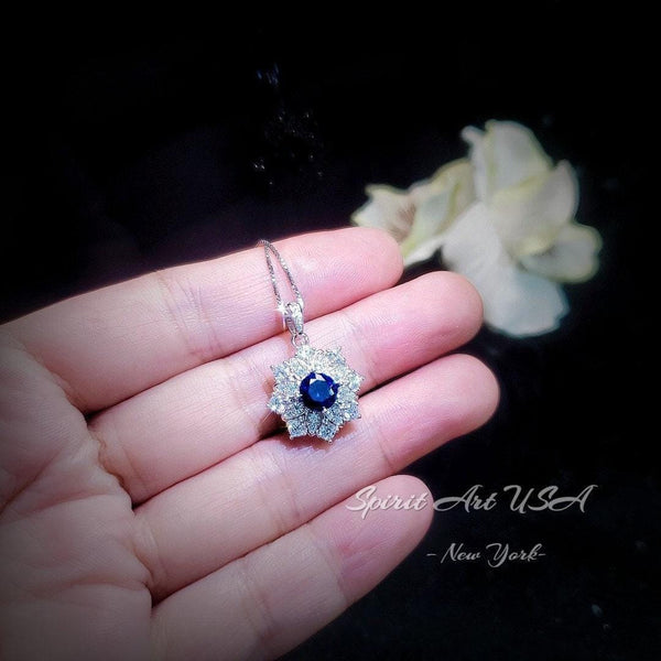 Blue Sapphire Jewelry diamond eight-petal flower Style round Cut