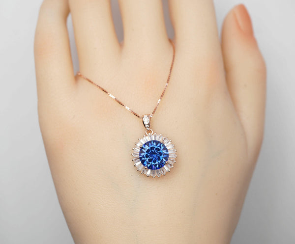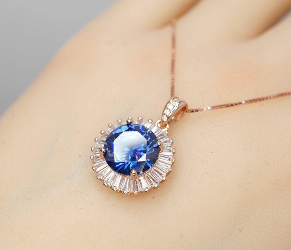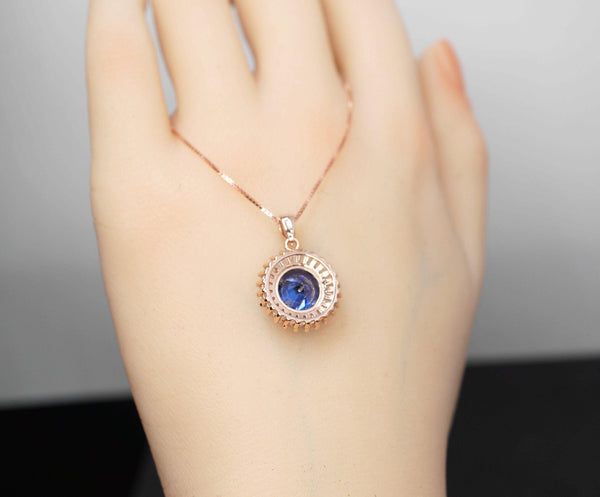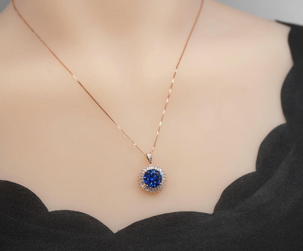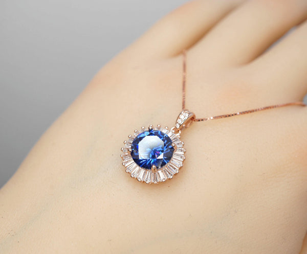 Materials: Rose gold coated sterling silver, Blue Sapphire Gemstone, rose gold.
