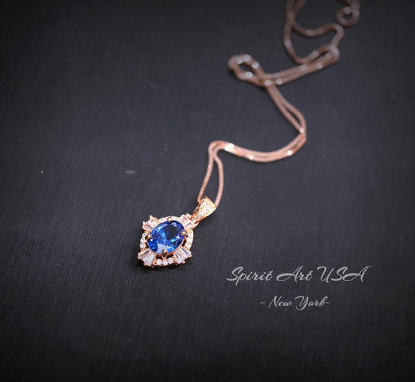 Tiny Blue Sapphire Jewelry Rose gold Oval 1.8 Ct