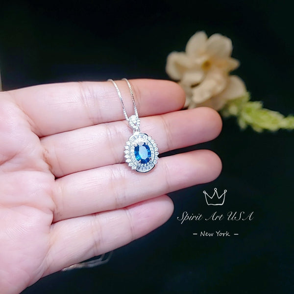 Blue Sapphire Jewelry 2 ct oval halo diamond Style