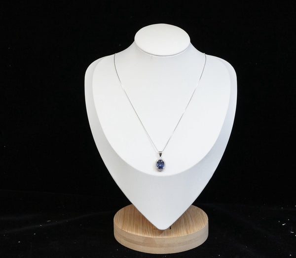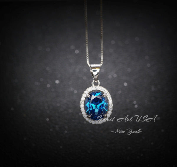 Halo Blue Sapphire Necklace - Oval 2 CT Royal Blue Gemstone Pendant - Gemstone White Gold Coated Sterling Silver - September Birthstone #285