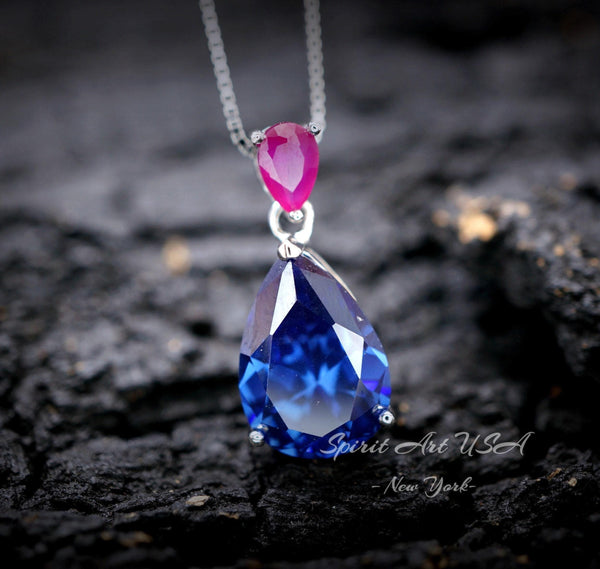 Large Double Teardrop Blue Sapphire Jewelry with adjustable chain