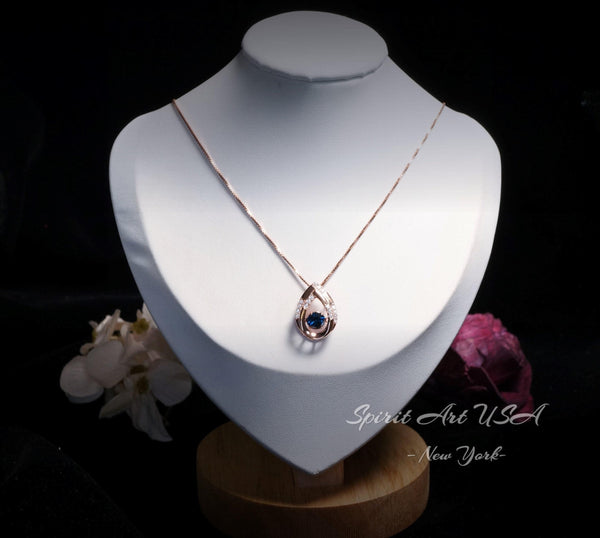 Swing Blue Sapphire Necklace - Rose Gold coated Dynamic 0.85 Ct Blue Sapphire Pendant - dynamic Sterling Silver - September Birthstone #176