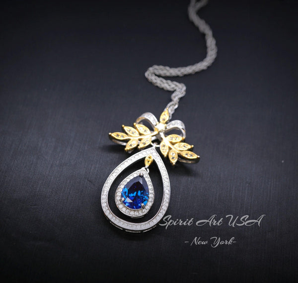 Large Teardrop Blue Sapphire Jewelry Gold tree of life Style