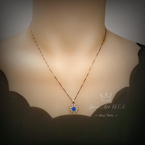 Tiny Blue Sapphire Sunflower Necklace Rose Gold Coated Sterling Silver Gemstone Flower September Birthstone 026