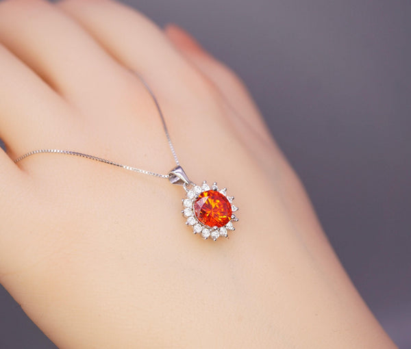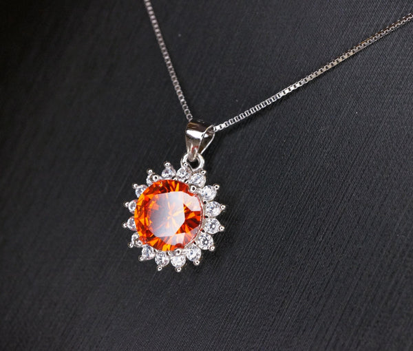Round Orange Sunstone sapphire Jewelry Sunflower style