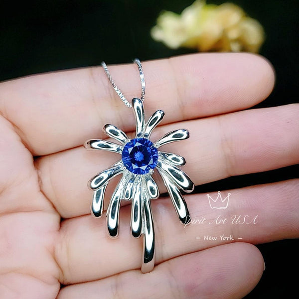 Firework Blue Tanzanite Necklace - Tanzanite Pendant - 18KGP @ Sterling Silver - December Birthstone - Firework Pendant #703