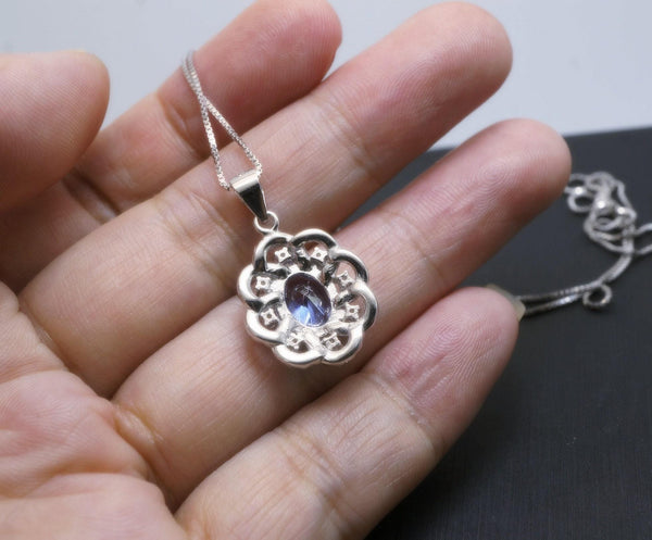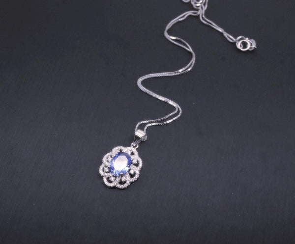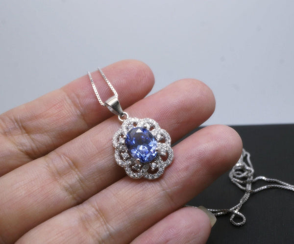 Main Stone: Lab created Energetic Deep Blue Tanzanite Gemstone.