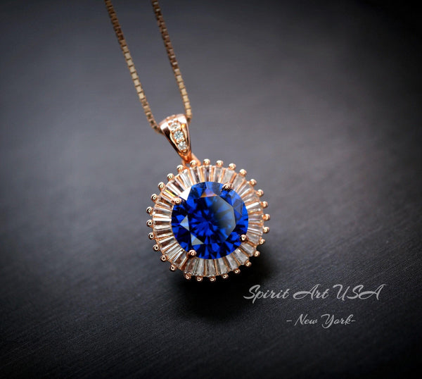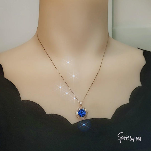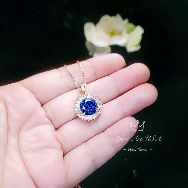 Large Blue Tanzanite Jewelry Round Rose Gold Sun Style