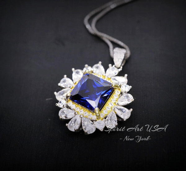 Large Square Tanzanite Jewelry gordeous Teardrop diamond surround Style