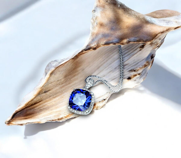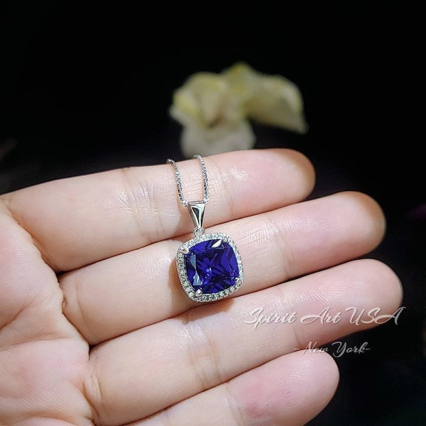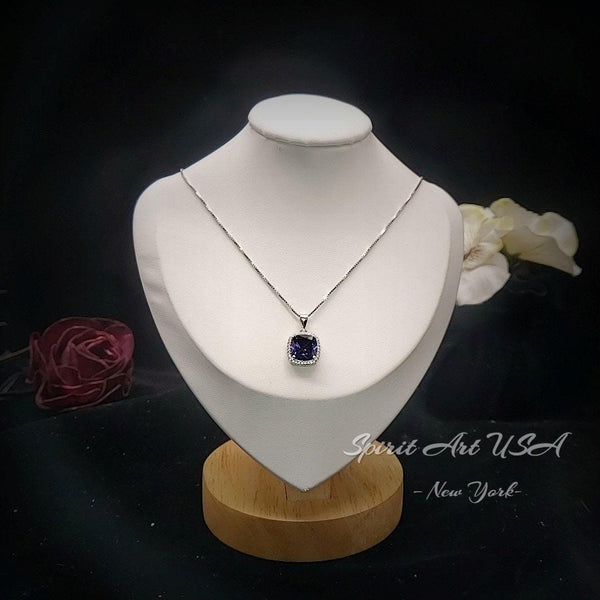 Large Tanzanite Necklace - 18KGP @ Sterling Silver - December Birthstone jewelry - Square Cushion Deep Blue 5CT Tanzanite #696